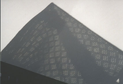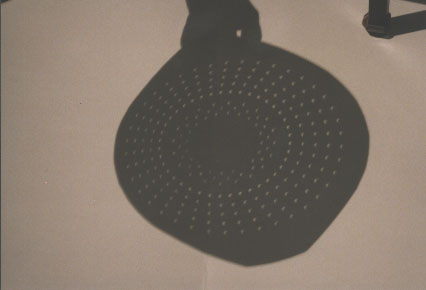 ©1998 Photo by Eric PauerA colander shows many tiny partially eclipsed suns after totality.