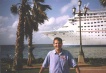 ©1998 Photo by Doug HolmesDecked in a souvenir eclipse hat and shirt, Eric relaxes on the Fascination, the day after the total solar eclipse in Aruba.